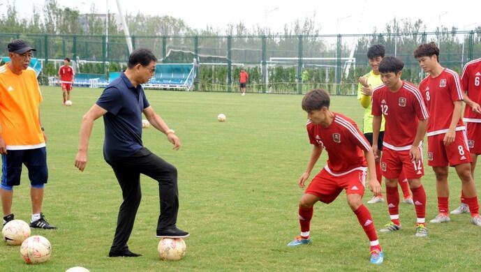 2000年建立崇明基地至今,徐根宝一直坚持自己示范技术动作,如今吕文君要承担更多技术示范任务。