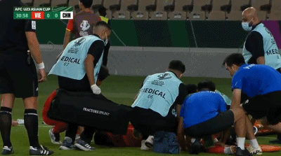 在2026年U23亚洲杯对阵中国U23的比赛中,后卫阮晓明不幸遭受重伤,经过国家队医疗组现场初步处理后,阮晓明被送上救护车,直接送往医院。